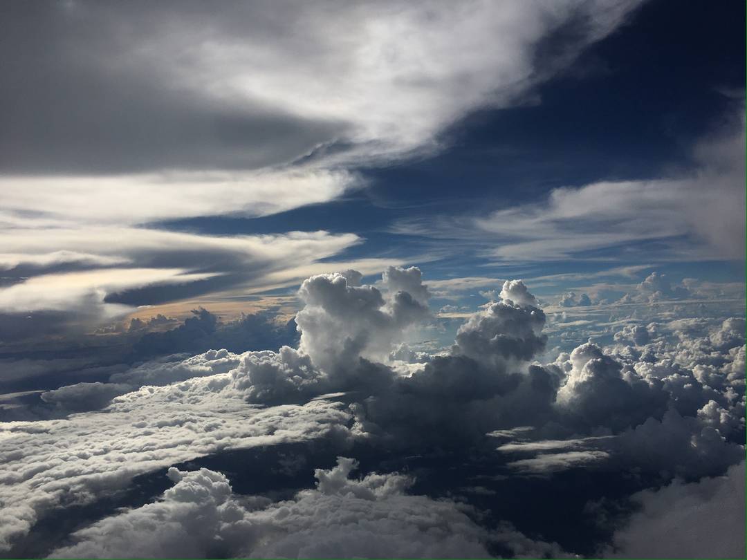 Qatar Airways es una compañía estupenda, siempre hemos volado muy bien con ella, aunque en el primer vuelo un poco más estrechos de lo normal. Disfrutamos de unos buenos mantos de nubes.